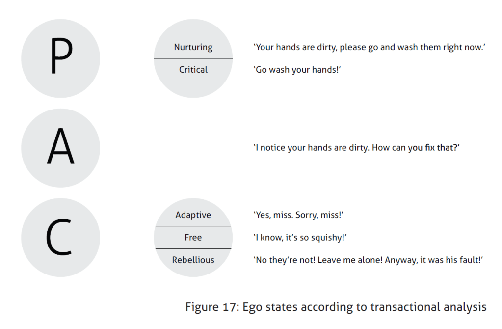 - People can respond to each other in one of three different ego states: Parent, adult and child